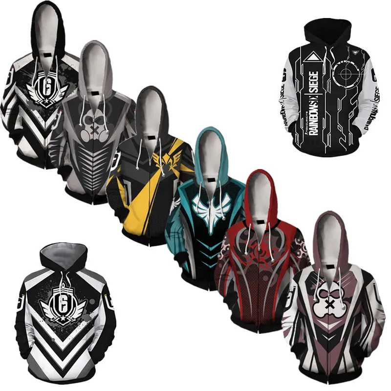 3D Full Printed Mens Boys Hoodies Game Tom Clancy's Rainbow Six Siege Cosplay Full Zip Long Sleeves