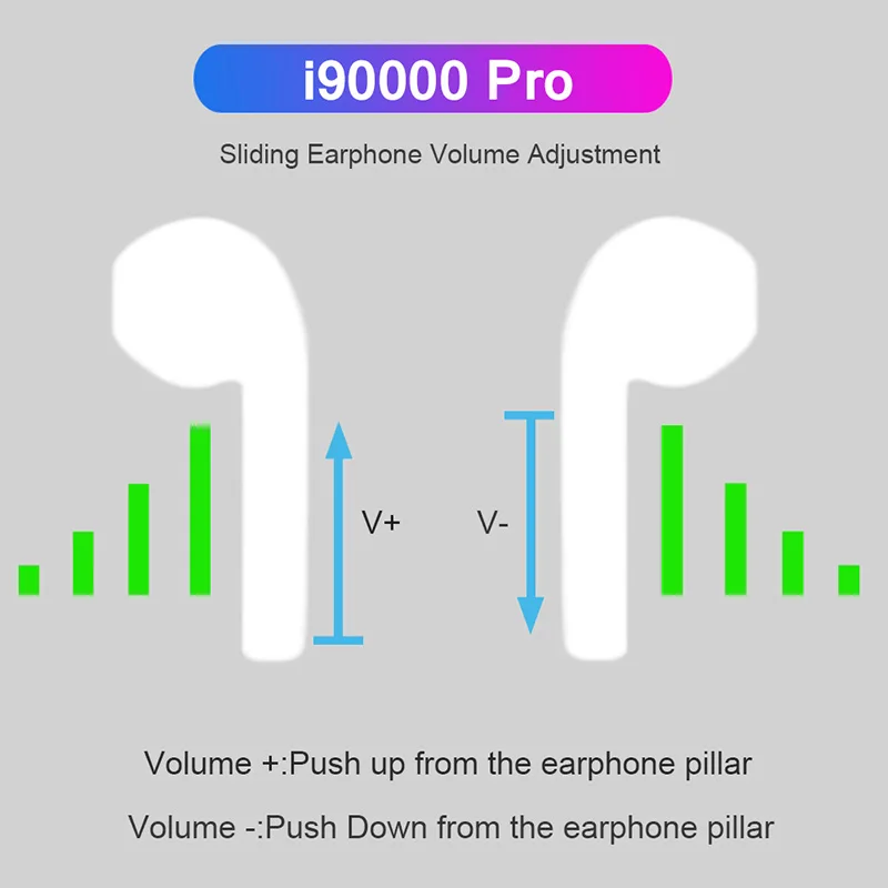 i90000 Pro TWS arie 2 Bluetooth earphone Wireless sport headphones fone de ouvido Sliding Volume Ad